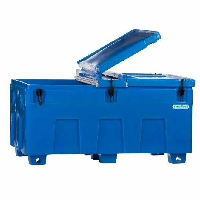 The 337 is insulated with PUR core and offers a unique storage solution. This container can hold 8 70L tote pans for lobster, providing an innovative solution that minimizes handling.