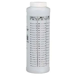 SeaChoice 21000 Oil to Gas Mixing Device. Oil mixture container allows the addition of the exact amount of oil required for a 2 cycle engine. Oil level marks are in gallons and litres. Determines ratios for 100:1, 50:1, 24:1 and 10:1 mixes. This wide mouth, quart size bottle can prevent fouled plugs or seized engines that can result from improper oil mixing.
