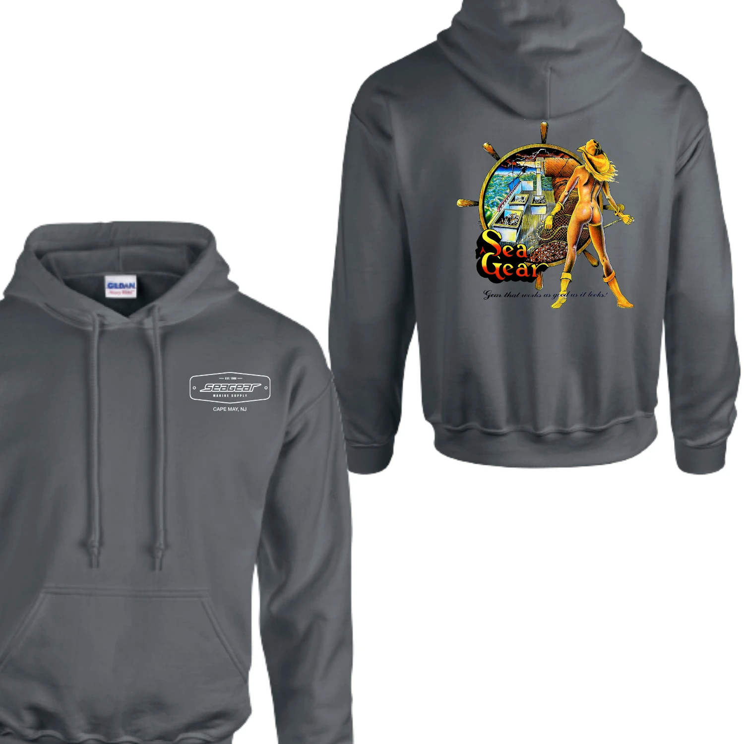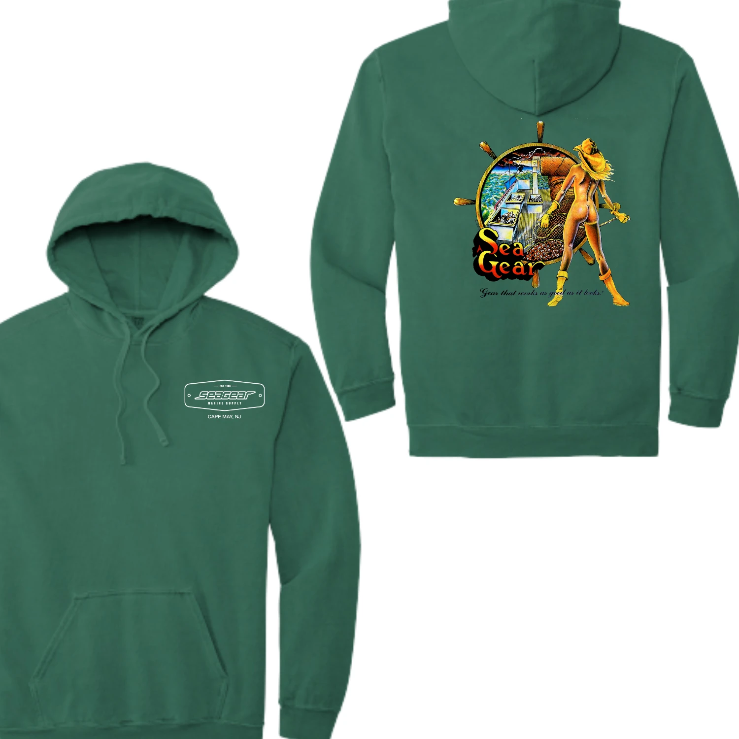 Authentic, Genuine, and Original Sea Gear Design! Catch some Sea Gear Marine attitude with our custom designed shirts- and “Hiney” is quite a view! Our famous Sea Gear screen-printed shirts are prized from the coast of Cape May to the shores of Alaska. Known for their great design and color, some are adventurous, some are humorous, some are sexy. All of them express the irresistible lure of the sea.
