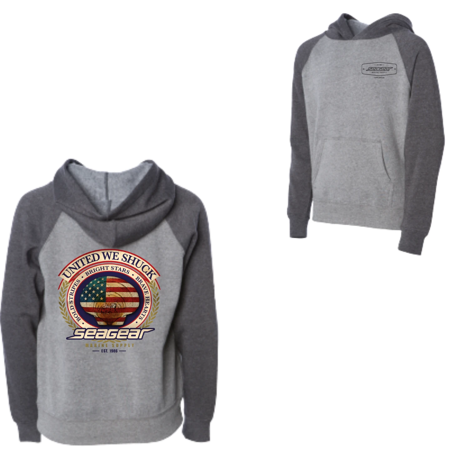 Authentic, Genuine, and Original Sea Gear Design! Catch some Sea Gear Marine attitude with our latest custom design – feel patriotic wearing “United We Shuck”! Our famous Sea Gear screen-printed shirts are prized from the coast of Cape May to the shores of Alaska. Known for their great design and color, some are adventurous, some are humorous, some are sexy. All of them express the irresistible lure of the sea.